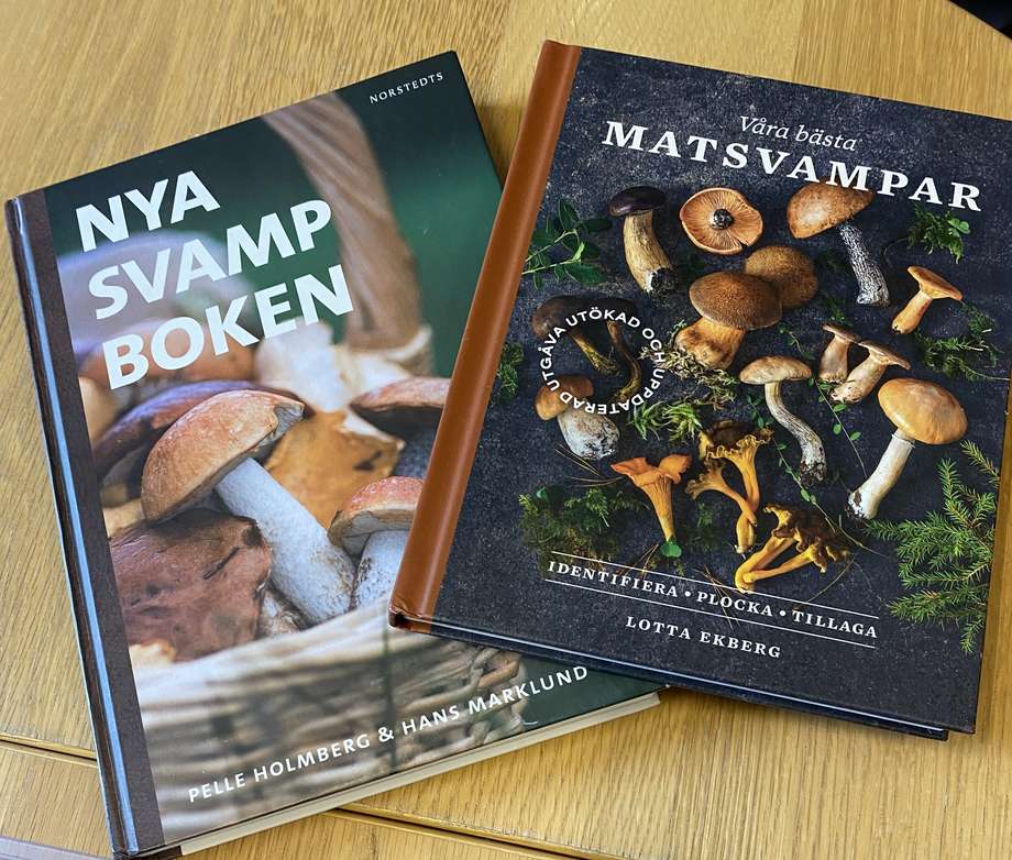 Två bra svampböcker som Gunnel ofta har med sig. Foto: Carina Nilsson