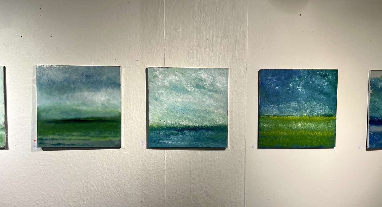 I utställningen på Severins Möbler finns över 250 verk från det senaste året, alla skapade med spontanitet och känsla. Verken berör ofta horisonten som symbol för både begränsning och möjlighet – en reflektion över människans relation till det okända och sökandet efter förståelse.