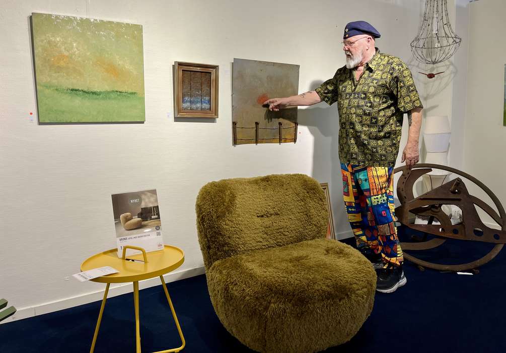 Prer Borger visar runt bland sin konst på Severins Möbler. Foto: Johan Jönsson