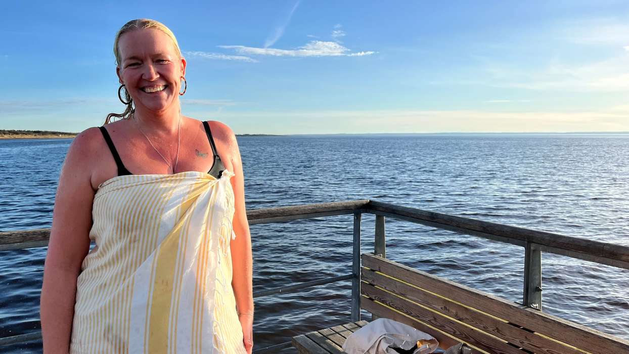 Halmstad NU har träffat Sofia Hilair på Östra stranden, notorisk vinterbadare.